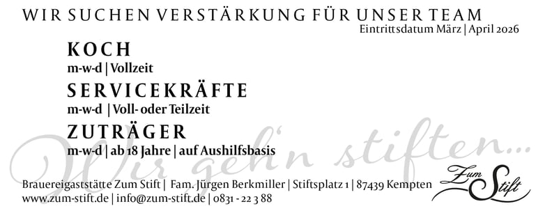 Wir freuen uns, Sie bald im "Stift" zu begrüßen